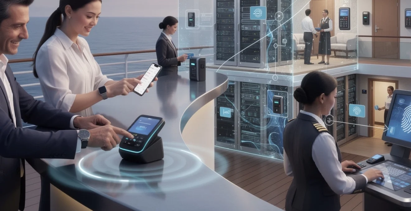 L’intégration de ces serrures électroniques avec le système de paiement à bord d’un navire de croisière permet de créer une identité numérique unifiée. Une même carte de bord ouvre la porte de votre cabine, valide votre présence lors des exercices de sécurité et autorise vos achats au bar. Pour l’équipage, cette centralisation simplifie la gestion quotidienne : les changements de cabine, les surclassements ou les restrictions d’accès temporaires se configurent depuis une interface unique, synchronisée en permanence avec la base de données centrale du navire.