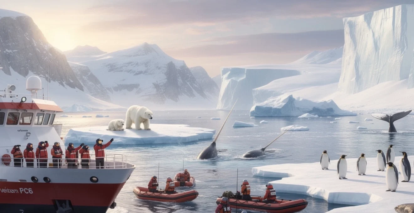 Grâce à ces navires brise-glaces et à ces technologies d’expédition polaire, il est désormais possible d’atteindre des régions autrefois réservées aux seules missions scientifiques. Chaque destination offre un visage différent des mondes polaires, du royaume de l’ours blanc aux cathédrales de glace de l’Antarctique. En choisissant soigneusement votre itinéraire de croisière en régions polaires, vous pouvez privilégier l’observation de la faune, la découverte de paysages spectaculaires ou le passage de détroits mythiques chargés d’histoire.